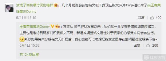 对于铭文改动成等价交换,有小伙伴觉得那之前分解过的岂不是很亏,于是就在微博下求Donny老师将之前的还回来。不过这就好比射出去的箭、泼出去的水,回不来的。
