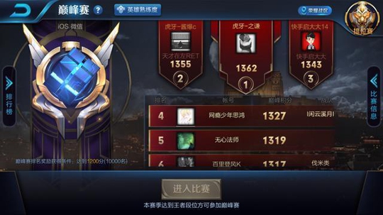 在新赛季,王者荣耀除了推出一个全新的模式契约之战以外,还在排位赛中加入了一个特殊的比赛,这个就是巅峰赛.由于需要最强王者玩家的人数达到10000才会开启,并且巅峰赛需要具备一定的条件才能参加,就是要获得本赛季的王者印记以及当前的段位不低于至尊星耀二.由于难度高,所以新赛季的巅峰赛在昨天晚上正式开启.
