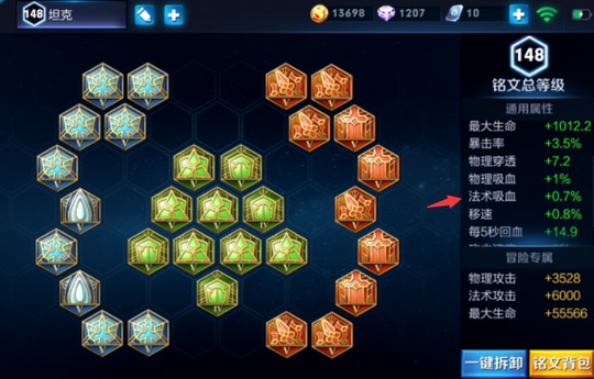 普通玩家一般会首选战士和法师的通用铭文,所以坦克和辅助类英雄的通用铭文一般只能进行混搭。一页坦克铭文页中可能出现吸血、攻速、暴击等鸡肋属性,如果铭文调整后就能相应的兑换掉混搭铭文,换为防御和生命等坦克适用属性。