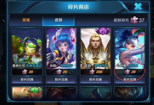 王者荣耀 皮肤碎片商店更新,28个碎片可以兑换到最美皮肤