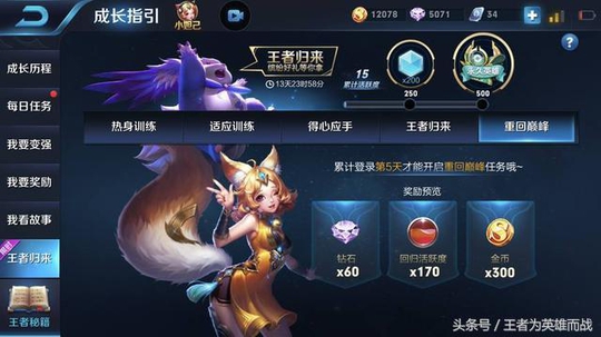 永久英雄的获取条件挺简单,只需要连续登陆然后完成每日的任务即可,凑够了五百点活跃度就可以直接兑换永久英雄,更重要的是,每天的任务完成后还可以获得额外的金币以及钻石奖励,是不是心动了呢?but,天美这是鼓励我弃游的节奏么