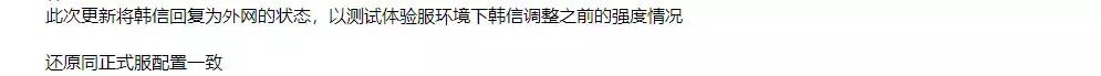 需要注意的是,官方的目的是测试到底哪一种韩信更适合当前测试服的环境。换句话讲,韩信改或者不改将会取决于测试服的测试数据。