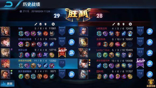 本来这是一场平常不过势均力敌的比赛了,双方的战绩也是非常的接近29:28,而但看到败方的鲁班七号的时候,小鱼不厚道的笑了,现在鲁班七号是有多吸引仇恨,一个人头拿不到就不说了,死亡人数竟然达到了10个。鲁班七号:拿人头是不可能的,只能放放技能蹭下助攻,接下来就看队友的表演就好了。