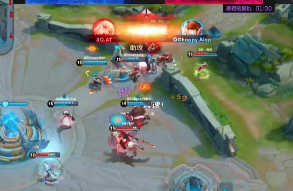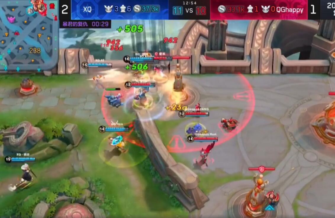 第二局可以说是刺痛的天秀了,他使用的公孙离在前期几波团战中疯狂拿到人头,五分钟时候就已经超神。这个在职业比赛里面可以说是非常少见的,一个发育很好的射手,可以说是无法阻挡的,后面QGhappy就是完全把XQ压着打。最后一波,QGhappy的太乙真人强行开团,其他英雄打出爆炸输出,轻松推上高地,点破水晶,双方1比1战平。