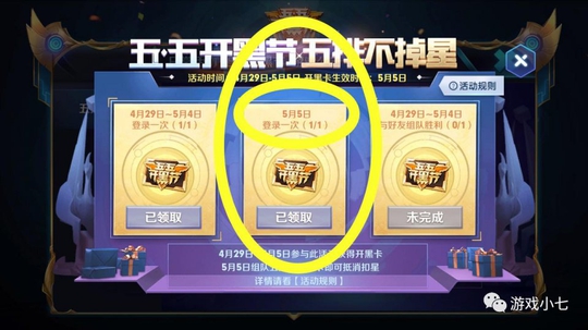 一:“五排不掉星”已经从5月5日0:00开始到23:59:59结束,其次必须要有“开黑卡”没这个卡,排位输了还是要掉星的,必须是五人组队排位,少一个人都不行,在这样的情况下输了比赛,系统会直接扣除你所拥有的“开黑卡”,1张卡可以抵消一次扣星。