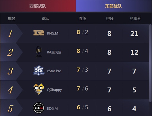 先来说说QGhappy,在东部,有三只同样及其强大的战队横跨在QG头上,他们分别是RNG.M、BA黑凤梨、eStar Pro,即便是稍逊于QGhappy的EDG.M,也有可能随时将QGhappy掀下台。
