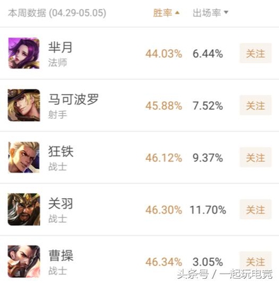 再看看胜率垫底的几个英雄,依旧是熟悉的配方熟悉的味道,芈月作为赛季奖励皮肤,可谓是彻底凉了,其他几个英雄和之前几周相比,也仅仅是位置轮换了一下,S11赛季的首个新英雄狂铁,热度下来了,可胜率依旧上不去。