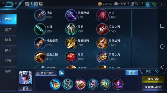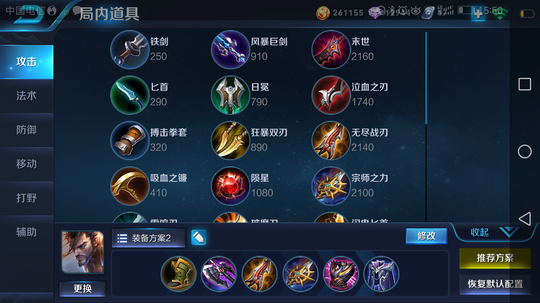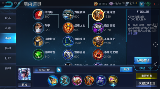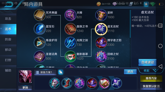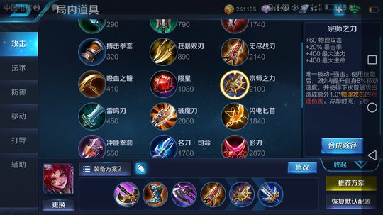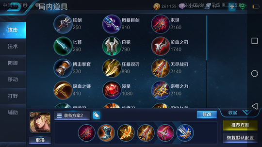日常出装,露娜怕控所以法抗鞋,打脆皮很疼,后期打野刀可以不卖,也可以换金身或者法穿杖
