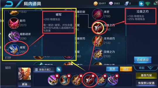 铭文的不同选择决定了所出装备的差异性,一个英雄的出装,只有根据铭文来选择才能够将两都的效用发挥到极致化。