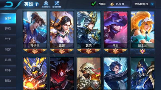 点击查看我的所有英雄,然后点击一个熟练度较高的英雄如下图。