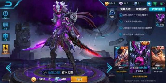 宫本武藏的这款传说皮肤地狱之眼出场特效也是想到的符合这款皮肤的名字。天空一片紫黑,并且下着紫色的雨。这时一道闪电劈下来,视乎就是因为这一劈,把地狱与人间劈通了,趁着这个机会,地狱之眼直接从地狱来到了人间。