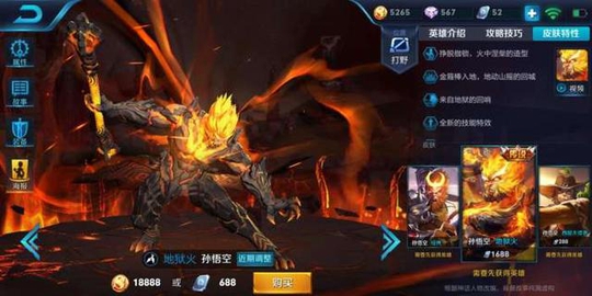 在这么多的英雄皮肤中,还有一些英雄的皮肤出场特效也是非常的炫耀的。孙悟空这么多款的皮肤中,以地狱火的皮肤出场最为炫耀。猴子开始被锁链锁在四周的地狱火之中,挣脱出来召唤金箍棒,势要把地狱击穿。