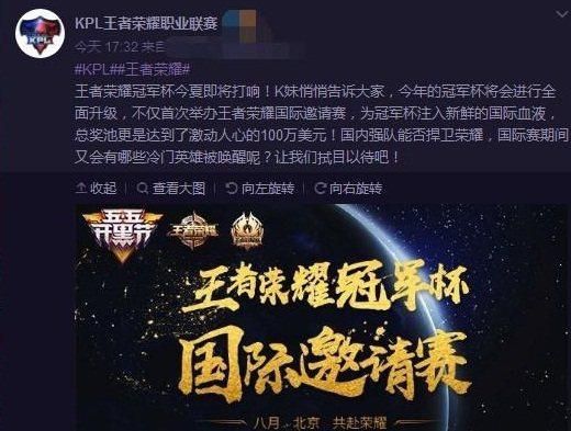 近日王者荣耀KPL宣布将举办冠军赛,而且是国际邀请赛,奖池的总奖金达到了令人惊叹的100万美元,要知道lpl发展了这么多年,奖金也就100多万美元。可想而知王者荣耀的影响力。KPL的这个决定里诺言事件过去才刚一周时间,kpl就弄出了这么大动静,着实让游戏圈众人惊呆了。难道中国电竞圈的荣耀要靠王者荣耀去争取?