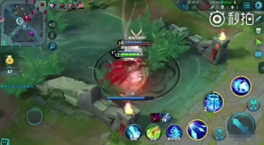 在游戏的过程中,因为一一些原因,我们的大西瓜跑到了中路草丛里面猥琐着准备回城了,然后这个时候,对面有玩家发现了,不过鉴于我们的大西瓜旁边有两个很给力的游戏队友,所以说对面的攻击并没有能够打断我们的大西瓜的回城