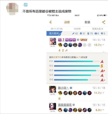 百里守约也不乏有些玩家玩的特别6的,比如这名玩家就是。玩家还甩出了自己的战绩给广大小伙伴们观看。声称不是所有的百里守约都是会被说成废物。
