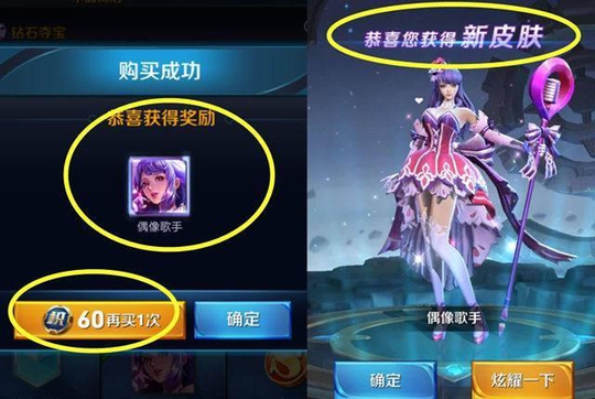 拿到积分抵用券后,玩家也没有多想,就随随便便的到积分夺宝商城那里随便点了一次,因为他觉得就这么一次,肯定抽不到什么好东西,无非就是一些铭文碎片啊、钻石啊什么的,可是没想到的是,这次天美给了他一个惊喜,居然一发入魂抽到了王昭君的偶像歌手,这可是他一直想要的一款皮肤啊,以前抽了几十次都没抽到,想不到这次运气这么好。