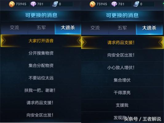 “扶我一把,谢谢”“不扶,你死了我好舔包”这样的对话虽然是网友们的自制语音,但是可以看到,在全新的大逃杀模式语音系统中还是出现了很多我们比较常见的快捷消息的,而大逃杀语音系统与我们正常游戏的语音系统也是完全分开的哦。