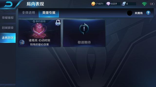 诸葛亮的心动时刻在契约之战中禁用,可以在游戏主界面——备战——局内表现——击败特效——英雄专属中查看和替换(目前还未上线)。心动时刻预计会在下周更新于正式服,这款特效应该不是免费福利,有可能是充值福利,或者需要花费点券。