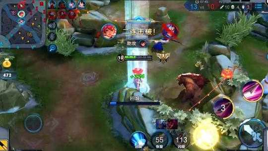 前期的花木兰上单出门,不过秀的不行的韩跑跑当然不会老老实实地上路对线,一会儿去下野区,一会儿gank一下,风头一时无两。这时,跑跑看到上路开团,直接跑去支援,先是利用轻重剑切换,一举击杀对方达摩。