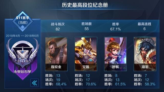 上面那个是小于的IOS的账号,现在基本已经放弃了,官方说好的闪退问题已经解决,但是每次到了关键团战直接闪退,直接不玩IOS的所有号;新赛季申请了一个全新的安卓区账号,真的是体会了单排在白银、黄金、铂金段位的无奈...队友有的完全不会玩,有的出来直接挂机,有的出来就骂人...不过最终还是用9个最基础的英雄过渡到了钻石段位!
