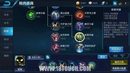 出门就是一个学识,然后就鞋子。守护者之铠,出这个是为了护甲,便宜。很久之前就流行这样了,然后再出小魔女,为了法防。为什么这么出。因为太二跟别人不一样,我只要开一技能就加了我的双抗240。所以先出小型是非常的划算的。后面再出霸者。游走可以不用回家。霸者出完再倒回来。