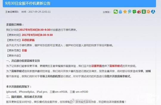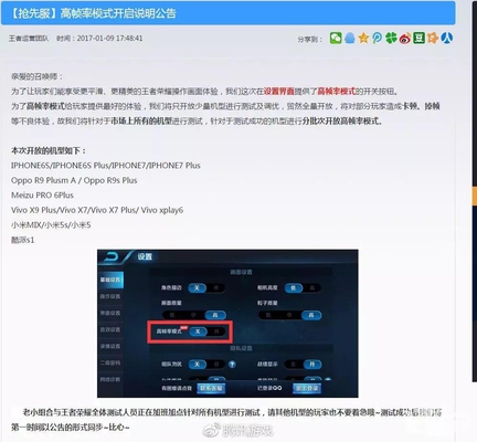 注:“高帧率模式”是一种画面优化技术手段,该优化措施已于2017年12月13日全量开放。