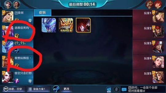 玩家表示自己非常喜欢玩韩信的,所以特意花9块钱买改名卡改了一个ID,名字叫做:我想玩韩信,取了这个名字之后,玩家拿到韩信的几率大大增大了,但是就在最近一盘比赛中,在进入游戏后,玩家整个人都蒙逼了,因为有个队友的ID叫做选韩信死吗,这不是直指玩家吗,玩家表示很尴尬,表示当时玩家进去后就和队友怒怼了,后面比赛不用想就知道输了.