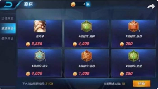 然后就是武道商店和远征商店,虽然说这两个商店没有铭文碎片礼盒,但是他们有铭文啊,兑换铭文转化成铭文碎片然后去获取自己需要的满级铭文,也是一个不错的方法。