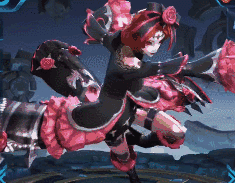 绯红之刃 与哥特玫瑰相似,武器收到身后,站姿改变。然后头发好像变多了?