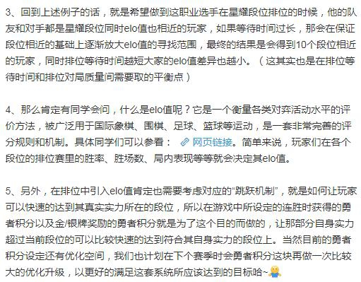策划表示,排位赛机制的目的就是让大神匹配大神,让实力普通的匹配到实力普通的对手,大神加小白的组合尽量匹配到大神加小白的组合。