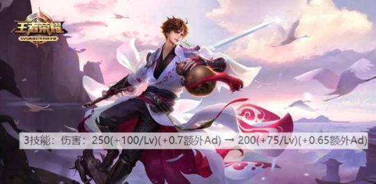 第2个是李白,李白自从改版之后伤害爆表,1技能可以叠加剑气,导致团战非常容易刷出大招,这次继续削弱大招的伤害,避免一个大招秒杀后排的情况。