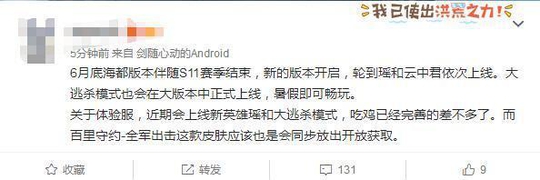 《王者荣耀》和《绝地求生》手游同为腾讯旗下目前火爆的手游。玩家对能在《王者荣耀》里玩到吃鸡模式翘首以盼。毕竟,王者荣耀一直在推出不同的娱乐模式满足玩家的娱乐需求。