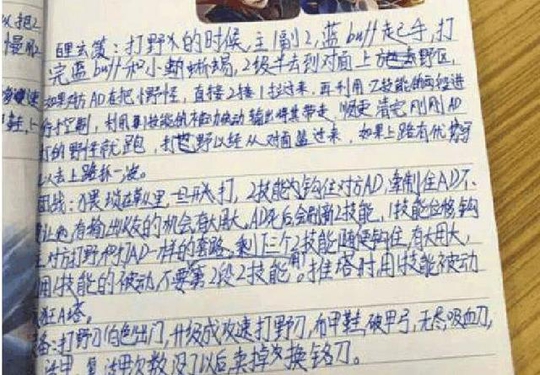小编看后也感叹现在的小学生打游戏的认真程度,可见也是一位钟情王者荣耀的游戏玩家,也许是因为记性差的原因,小学生的笔记十分的仔细。