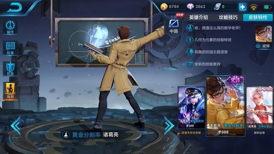 分别是李白的千年之狐(788),孙尚香的末日机甲(1688),诸葛亮的黄金分割率(888),兰陵王的暗影猎兽者(888),均是价值不菲。