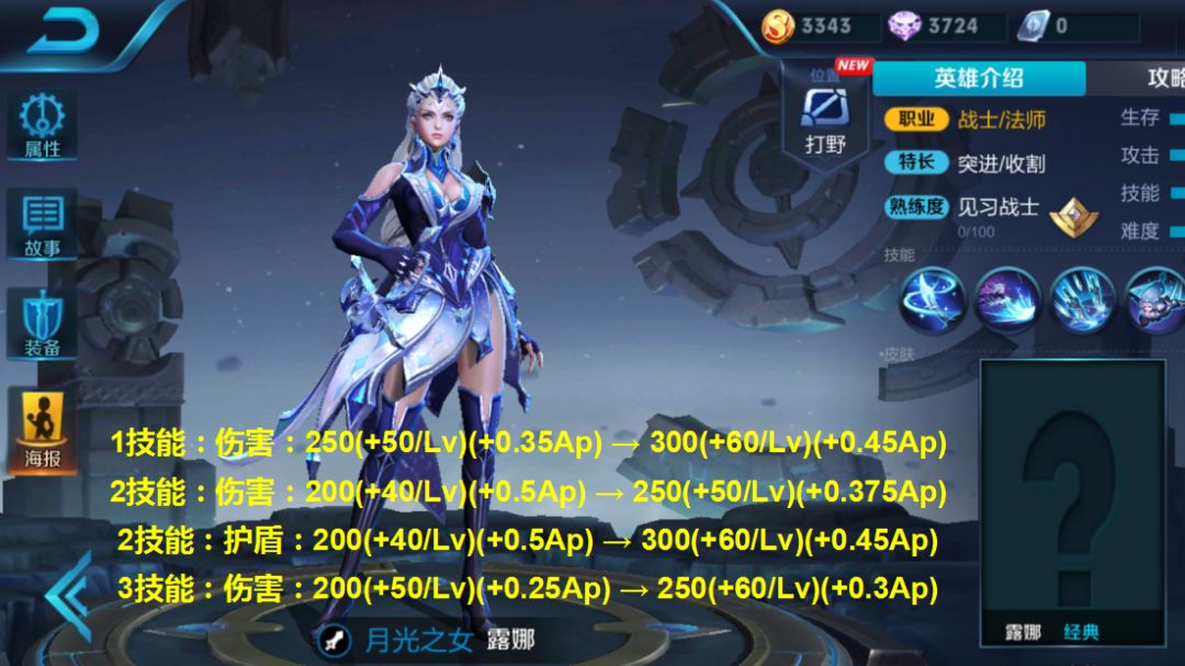 新露娜没有控,但是她本身又是在团战中左右冲突打伤害的英雄,所以官方就增加了新露娜的伤害和护盾的强度,以保证她不会在伤害没打出之前就死翘翘。大鱼兄觉得,新露娜完美诠释了什么叫英姿飒爽,什么叫巾帼不让须眉。没有了原版露娜的一脸孩子气,重做的露娜真的好看~