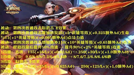 6.韩信在属性方面调整的最多,击飞效果取消,增加了被动大招的伤害
