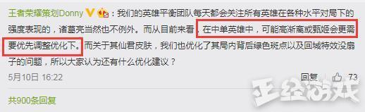 还有就是关于中单调整的问题,策划表示相比较诸葛亮来说 更需要优化的还是甄姬和高渐离 ,因为这俩排位赛出场率去确实都没过50%,而且高渐离出场率仅为3.8%。小弟推测策划这样说的话未来是会考虑加强这两位英雄的。