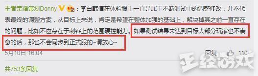 另外策划也针对了近期关于韩信的调整、露娜皮肤等等问题做出回应。表示如果体验服的 英雄没有达到预期的调整目标是不会上线正式服 。而 露娜的皮肤建模变丑只是因为这是个半成品 ,大家不用担心。