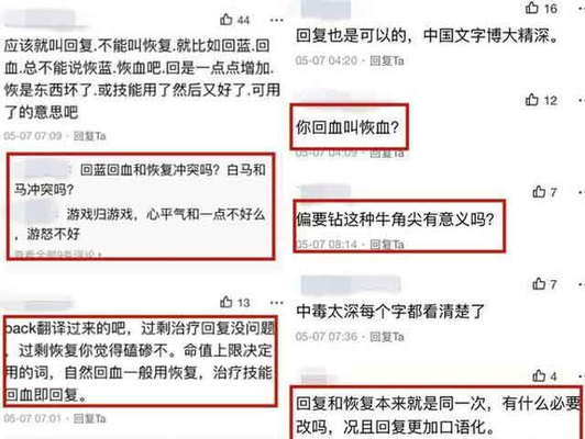 这也正式玩家们讨论的核心了。到底是哪个错了?或者说还是两个都是对的。十二万网友一起讨论两个字的含义,这样的画面也是很奇葩了吧。有玩家就表示,应该就叫回复,不应该叫回复,比如回蓝回血,不可能说成恢蓝恢血吧。也有网友表示回蓝回血和回复不冲突啊。至于还有玩家所说的过剩治疗回复问题这个,小编表示好高深,真的看不懂呢。