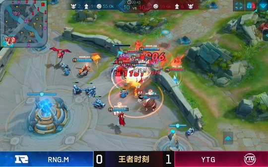 这时候的团战是一个四打五的状态,RNG五人都在,而YTG的张飞已经被击杀,所以说这时候他们只剩下四人,不过在RNG想要撤退的时候,YTG根本不管人数差距,直接反打击杀了RNG众位英雄,中期YTG直接扳回来了!