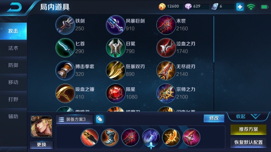 边路出装:攻速鞋(后期建议更换抗性鞋)、末世、纯净苍穹、闪电匕首、破晓、复活甲。