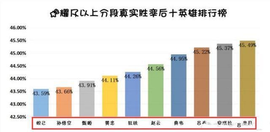 榜首前十的英雄榜就不做过多的介绍了,接下来给大家看看大神玩家胜率排名倒数前十的英雄,其中有些真的是出乎意料啊~