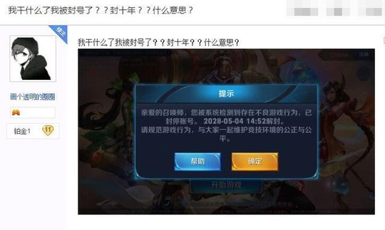 王者荣耀玩家登账号突然弹出一个信息,封号十年,整个人都懵了!