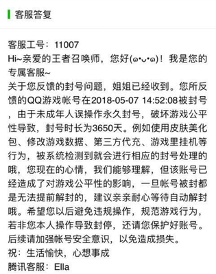也找了官方反馈,结果反馈直接让玩家怒火中烧,什么鬼反馈,居然说玩家可能使用了,皮肤美化,第三方代充,修改游戏数据,游戏里挂机等行为,还说查明了原因,不能解封,还祝玩家生活愉快,玩家心情都要炸掉了,愉快个鬼,玩了一年多的账号就这样封了,还封了十年,虽说只充了六块钱,但是还有许多铭文那些啊.玩家也决定一直申诉,如果找不回就不玩了.