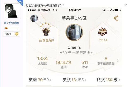 玩家也说出了第二个理由,是不是因为这几天连续掉分,从星耀一掉到星耀三所以被办为恶意掉分呢?但是按照道理也不会封十年啊,顶多也就是一个月,但是玩家那个掉分情况是队友太坑造成的,没有特意说去掉分的.