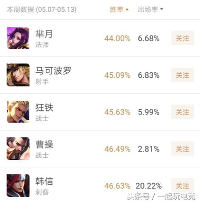 王者荣耀五月最新英雄胜率数据公布:法师很强韩信代替关羽成倒数
