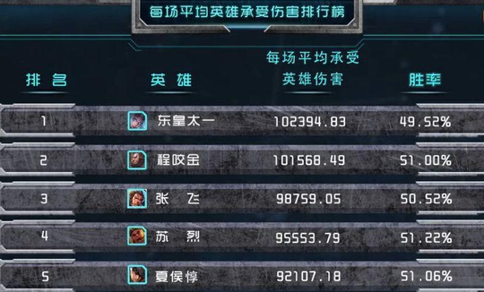 四、英雄场均承受伤害排行榜