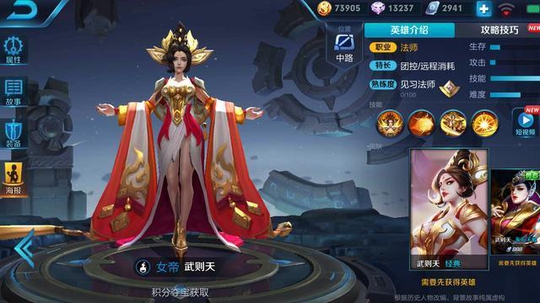 第一个当然是武则天了,这个只能点券抽的英雄从未在限免英雄中出现过,所以体验过武则天的小伙伴还是很少,除非你有体验服资格,才能有会在体验服体验一下土豪的感觉。