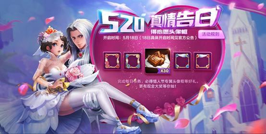 5月18日更新后,召唤师根据任务提示完成告白任务积攒告白值,集满可兑换浓情玫瑰、情人节纪念头像框、单身贵族头像框等好礼!