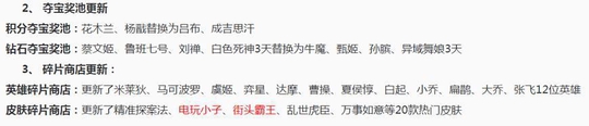 5月15日更新后,积分/钻石夺宝奖池、碎片商城更新。皮肤碎片商城更是更新上线了电玩小子、街头霸王等超值皮肤!